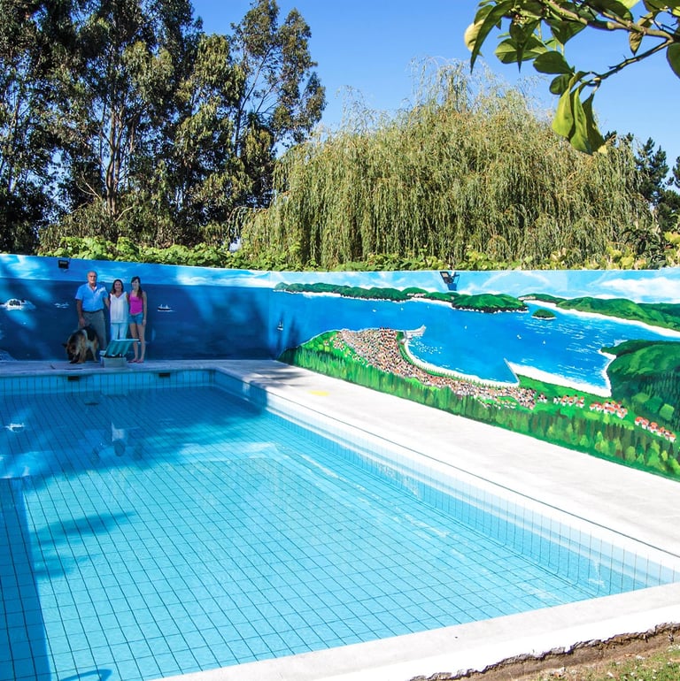 Embellece tus espacios exteriores con mis murales personalizados. Desde muros de piscinas hasta paredes de jardines, creo escenarios que te transportarán a lugares especiales.